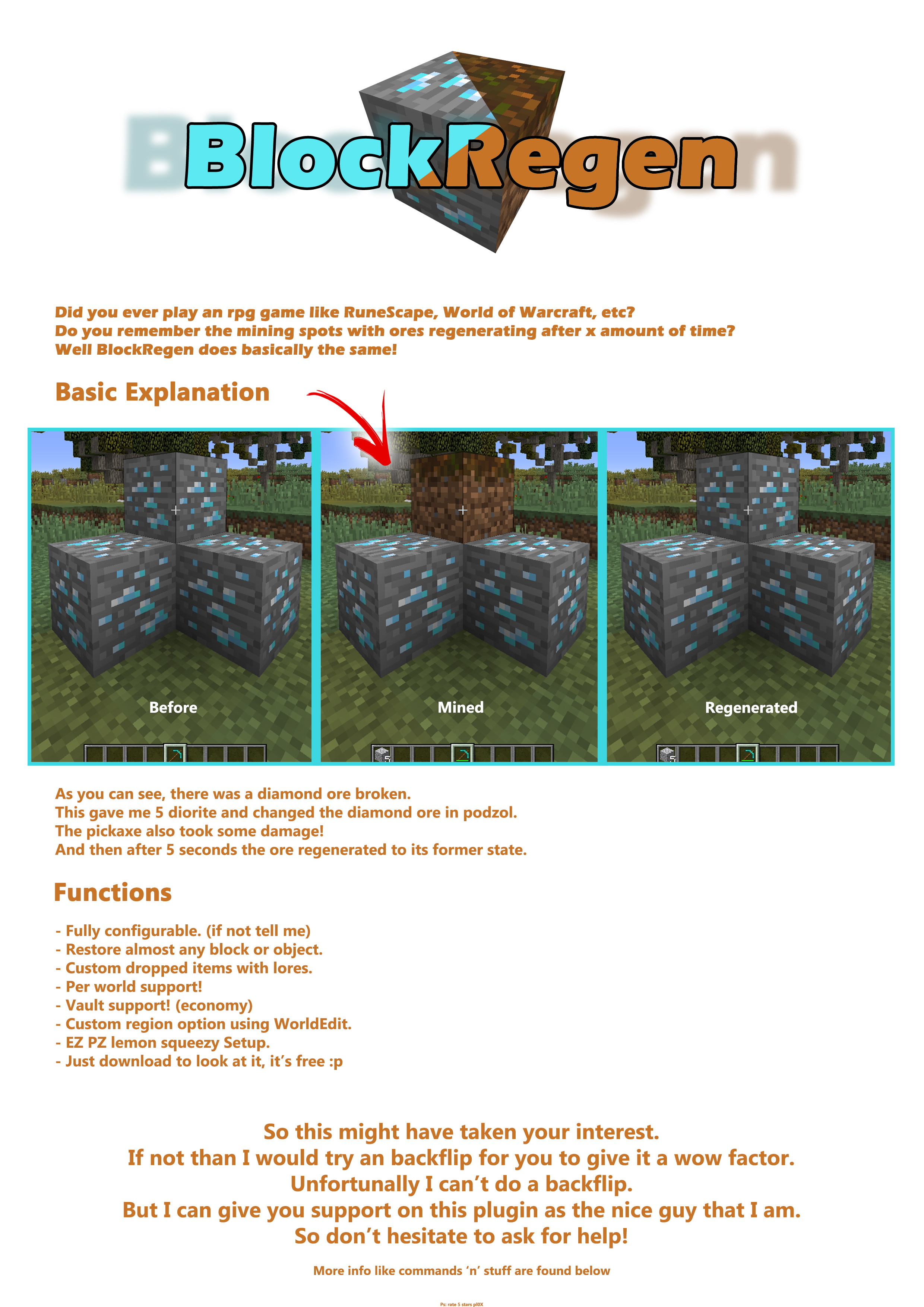 Basicamente este plugin consiste en que cuando rompes un bloque se transforma en otro y en un tiempo vuelve a ser el mismo de antes.