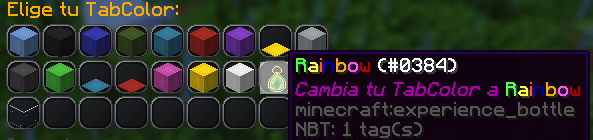 ¡En este menu puedes elegir el color con el que vas a escribir en el chat, con el que apareceras en el TAB o el nombre de tu nick en el chat!